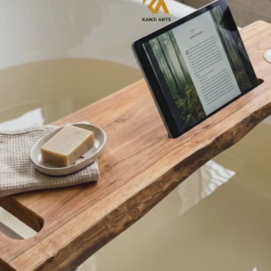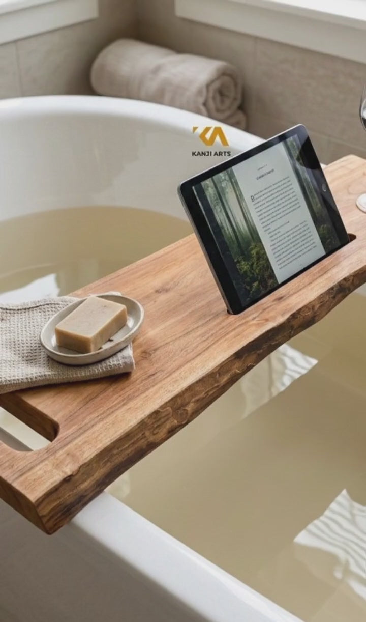 Live Edge Acacia Wood Bathtub Caddy: Modern Bath Tray, Bathtub Board, Bath Shelf Cozy Spa Sessions Wooden gift for Her Spa Bathroom Bathtub